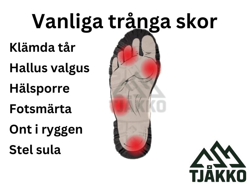 Dina tår är säkert inträngda i vanliga skor som för de flesta andra. Kanske har du ont i fötterna eller tårna. Oftast är det stortån som tar mest stryk. Om du går för länge kan du utveckla Hallux Valgus som blir så illa att det krävs operation.