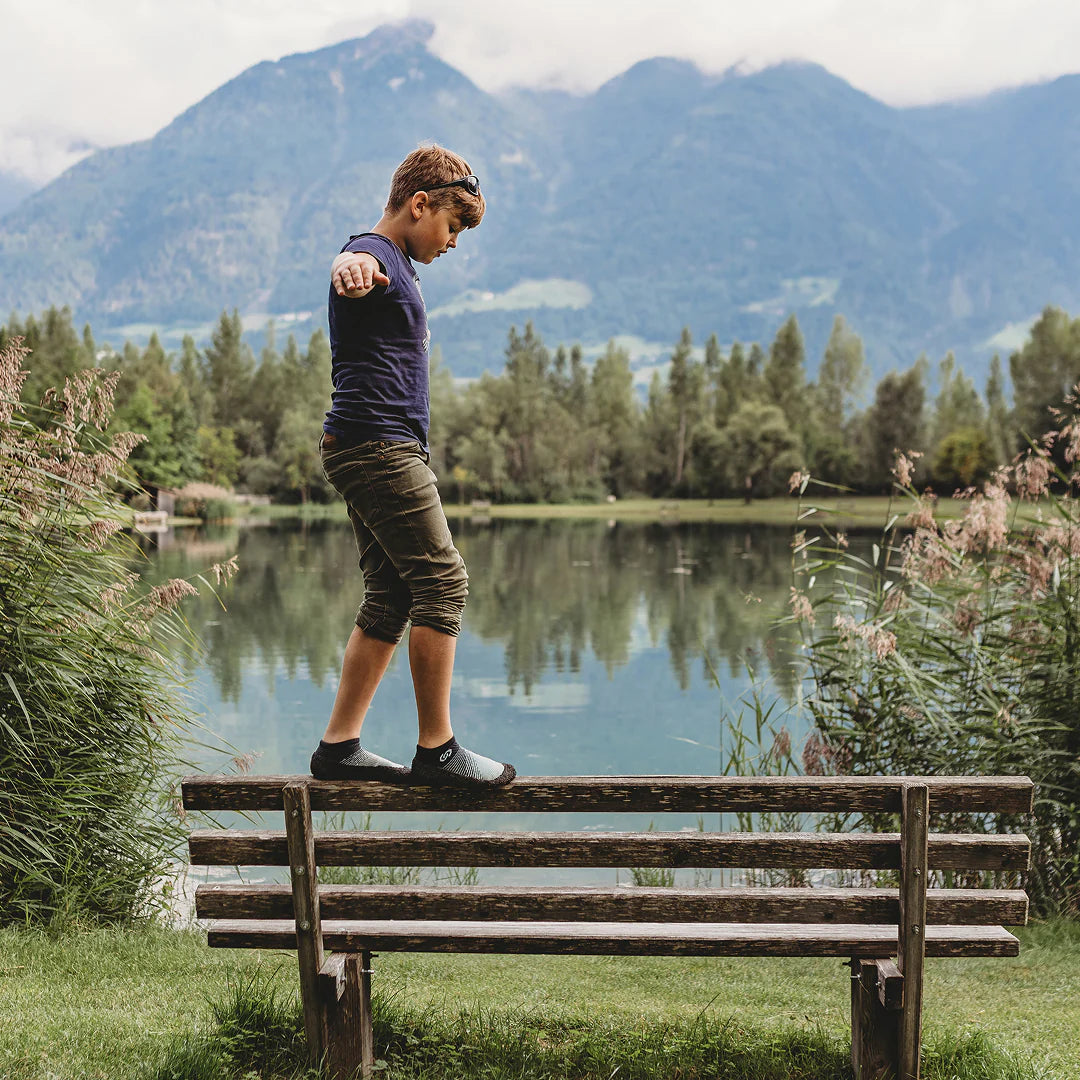 Med en hållbar 3 mm-sula och en bred tåbox får fötterna röra sig naturligt samtidigt som de skyddas mot skarpa stenar, heta ytor och ojämn mark.